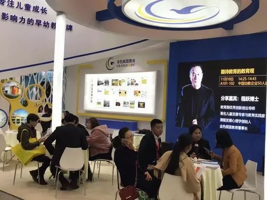 金色摇篮教育不仅在展位上精彩亮相,前来咨询的嘉宾络绎不绝,创始人程跃博士还率资深教育专家团队出席“中国幼教企业50人论坛”、“特色幼教工作坊”、“幼儿园发展论坛”三大主题论坛。三场精彩演讲,场场座无虚席,为了听取金色摇篮大咖演讲,很多嘉宾甚至席地而坐,汲取知识的热忱让会场沉浸在热烈的氛围中。