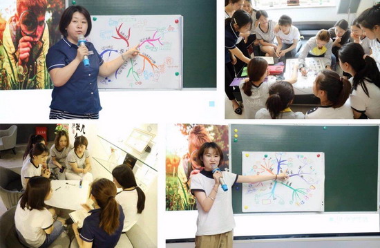 接着由幼儿园直营事业部研学部的韩淑慧老师为大家带来的《玩转思维导图》的课题分享,她让老师充分感受到参与式、互动式与体验式的学习乐趣。在共建环节,各园所的教师们完成了富有奇思妙想的作品,展现了老师们的创意能力。