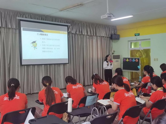 金色摇篮济南康桥园杨艺老师与参训老师们分享了《表象积木的教学方法》。杨艺老师从表象训练的原理和方法入手,对表象积木各年龄段的课程安排和课程体验实施展开分析,为老师们示范了表象积木的教学技能技巧。