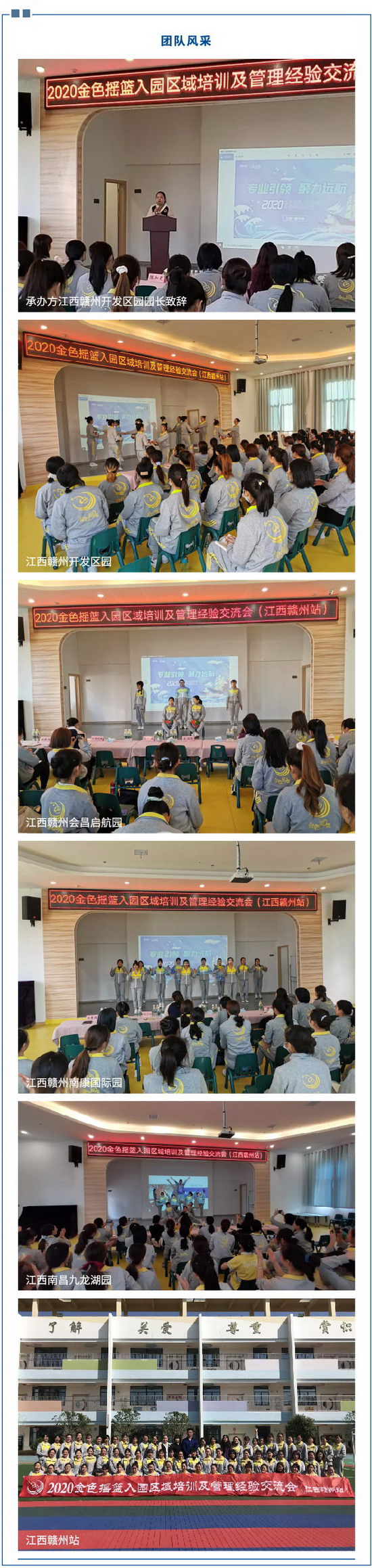 2020年11月14日-22日,金色摇篮入园区域培训及管理经验交流会(安徽站·江西赣州站·湖北站)相继成功举办。
