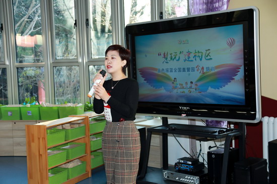 刘爱荣老师介绍说,自2019年5月以来,“金鹰培训”已经通过4期培训完成了各领域游戏化教学内容的分享。从本次培训开始,“金鹰培训”的课题将转入区域建构新内容。在有关区域建构的研讨中,老师们将更精准地了解各年龄段孩子的特点和认知,从而更好地做到让区域活动从孩子需求出发,发挥孩子的主动性,让孩子成为课程的主人,提升活动效果,提高教学质量。
