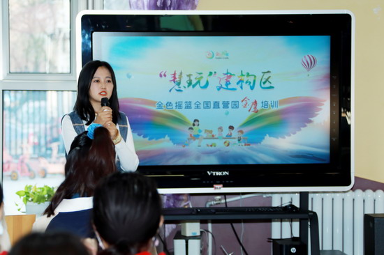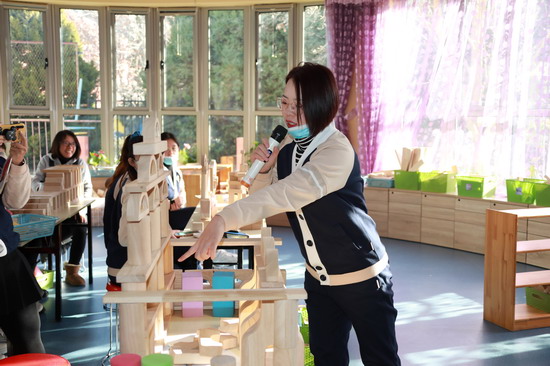 培训的最后,金色摇篮教育直营园校事业部教学部经理韩淑慧老师强调了“金鹰培训”对老师们的期许与要求。韩淑慧老师表示,“金鹰培训”一贯注重理论性与实践性相结合,在本次培训后,参训的骨干老师们要将所学内容带回到本园展开进一步研讨,结合本园实际情况,让园内所有老师都学习、了解搭建建构区的教学方法,并在班级内创建出符合本班孩子年龄段和发展特点的建构区。此后,“金鹰培训”还将针对其中的优秀方案进行交流和分享,以促进各园更好地将所学内容落实到教学实践当中。