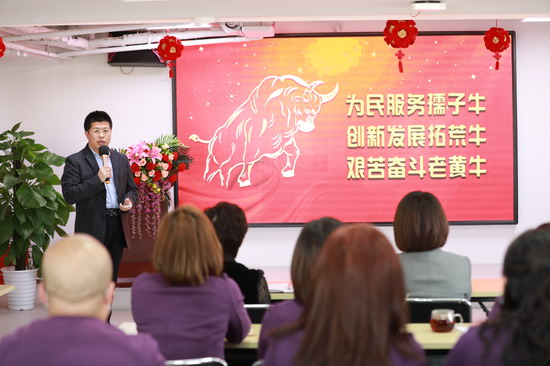 金色摇篮直营园校事业部行政总园长潘广祥从行政工作的层面出发,全面阐述了金色摇篮直营园在2020年中克服困难,通过疫情防控、创新自救、招生工作、师德建设、开源节流、人力管理等方面出色完成全年工作,为园所经营奠定坚实基础。潘广祥老师表示,2021年的行政工作仍然要围绕依法办园、师德安全、招生工作、园所经营、多元发展等5个重点展开,报有“为民服务孺子牛;创新发展拓荒牛;艰苦奋斗老黄牛”的精神,实现园所崭新发展。