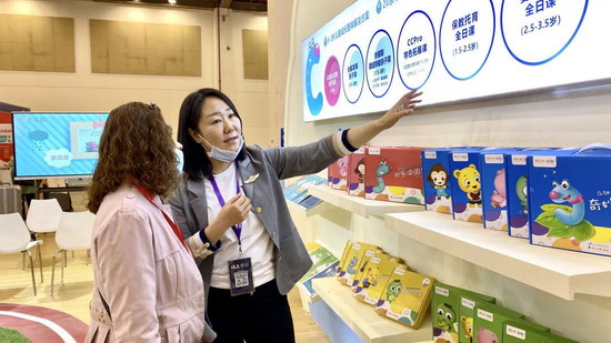 金色摇篮教育展区大屏前观众驻足,被视频中孩子们精彩的拍球、跳绳、轮滑、小提琴等展示所吸引。大家纷纷前来咨询有关潜能发展心理学的内容,并对金色摇篮如何为家庭育儿和教育机构提供专业的指导服务和系统的支持予以了解。金色摇篮教育借助本次展会,其专注儿童成长管理,助力园所和谐发展,推动幼教产业升级的专业形象再次深入人心。