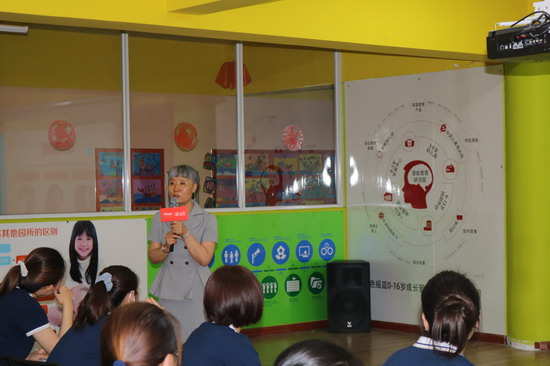 本次会议有幸邀请到金色摇篮教育高级专家,清华大学社会科学学院积极潜能心理学项目组研究员,北京师范大学教育与发展心理学研究生,金色摇篮创始人程跃博士私塾弟子,婴幼儿教育专家,早期教育高级指导师张鸿老师,为我们分享课题《做最适合可持续发展的资优教育》,从幼儿的生理发育特点引出幼儿心理及大脑发育特征,让老师们更好的理解摇篮理念。