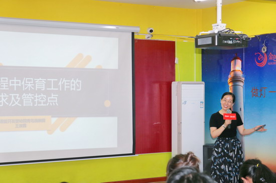 金色摇篮青岛旗舰园讲师王淑霞老师为大家分享《保育工作的流程及管控点》,只有保教结合课程才能更好的落地,一日流程才能更好的实施,保育工作为我们的教育工作保驾护航。