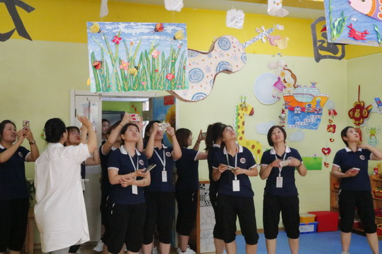 中午时间带领参会老师们进行了直营园参观,学习精细化管理,了解园所文化,借鉴环创精华。