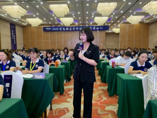 金色摇篮幼儿园运营管理事业部总经理赵芳老师代表总部致辞。赵老师首先对老师们走进培训班,迎接高强度、高密集的学习表示嘉许。她希望每一个参培老师都能带着明确的目标、怀揣空杯之心、运用高效的学习方法开启此次培训之旅。她嘱托大家在培训返园后一定要认真研读笔记,不断复盘,把所学知识应用到实际工作当中,并带领园所其他老师提升进步。