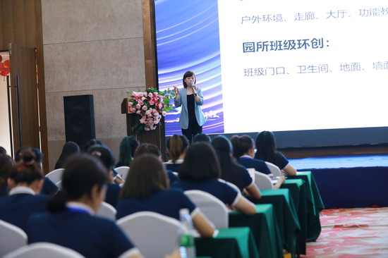 良好的幼儿园环境能促进孩子身心健康发展。修亚鹏老师在《创设“会说话”的幼儿园环境》的分享中,全面讲解了幼儿园环创的重点内容。她表示,幼儿园环创从户外环境、走廊、大厅、功能教室、餐厅等公共区域,到班级门口、卫生间、地面、墙面、区角等班级区域,均需要根据不同的环境特性,结合幼儿各年龄段特点进行精心设计,在让幼儿感知美的同时,促进孩子良好的行为习惯养成和心理素质的形成。