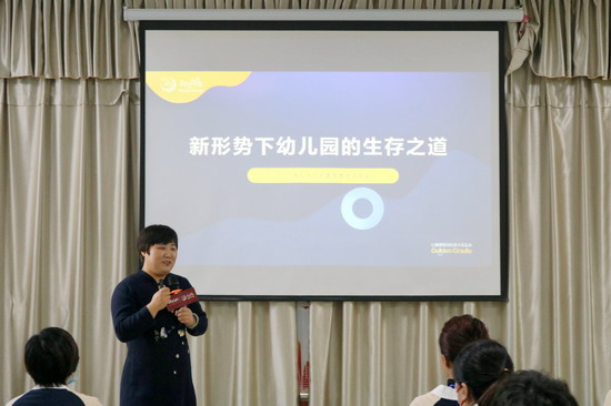 金色摇篮济南康桥园园长张涛涛老师通过分享《新形势下幼儿园的生存之道》,帮助园所在新政策下打破僵局,创造核心竞争力,生存有道。