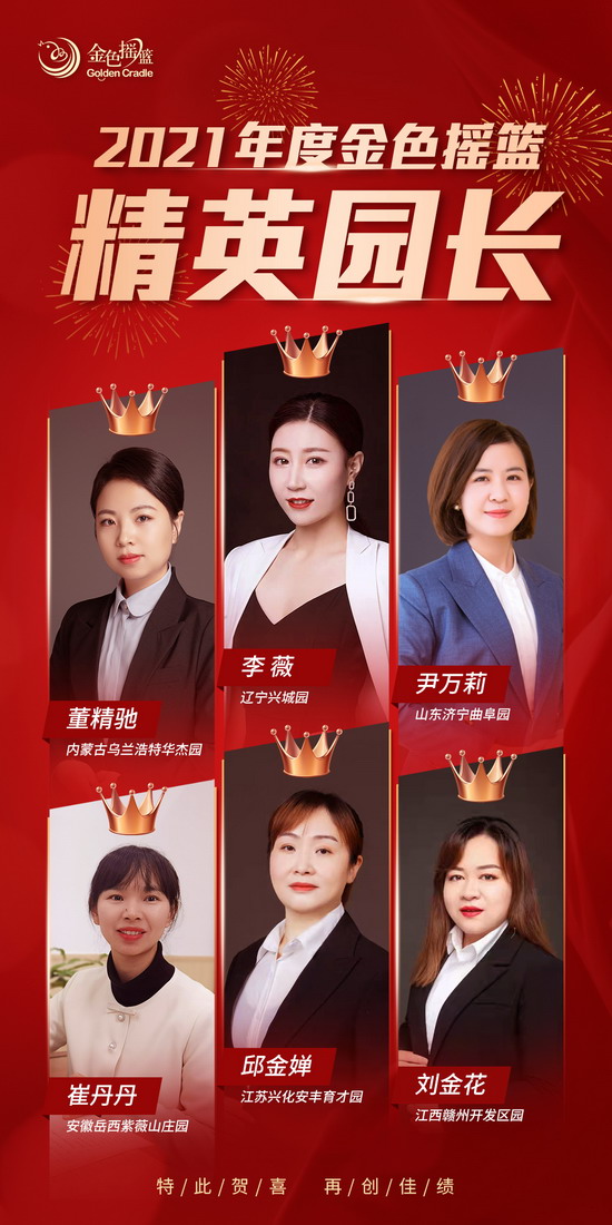 目标一致,信念一致,行动一致,全国金色摇篮合作园在过往的2021年中齐心协力、锐意进取,在取得成绩的同时,也涌现一批批优秀的团队与个人。会议上,总部对评选出的“2021年度金色摇篮优秀园所”、“2021年度金色摇篮卓越领航者”、“2021年度金色摇篮精英园长”进行了表彰,会议主持人,金色摇篮运营事业部高级督导陈加更老师代表总部感谢并鼓励大家紧跟总部步伐和要求,积极参与总部各项工作和活动,更好地实现了全国摇篮园所的品牌联动力,以及园所自身的快速成长。