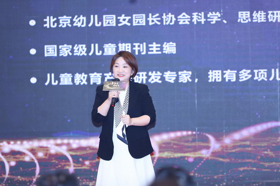 金色摇篮教育研究院院长曾嵘以《趋势·需求·成长》为题,分享平台为金色摇篮布局的素质类课程。她重点介绍了科学类特色课程“V博士科学实验室”,指出其就像孩子手中的移动科学实验室,能够抓住敏感期,为孩子点燃科学探索最初的火花。