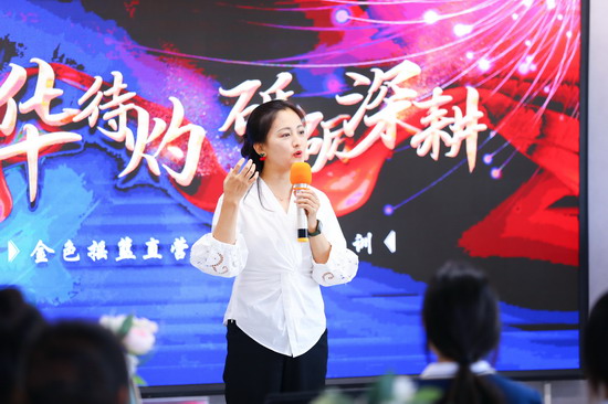 刘爱荣老师以3个关键词对实习教师们给予鼓励:第一,选择。金色摇篮是个拥有自有IP和总部服务与支持的优质平台,选择摇篮会是职业生涯的一个美好起点。第二,成长。金色摇篮精心为老师们规划了包含专业晋级和职位晋升两个体系在内的成长地图,只要努力,就能获得更多成长。第三,转变。从学生到老师,从理论到实践,角色的转变要求大家全方位调整自己,学会呵护、引领孩子,进而成就更好的自己。