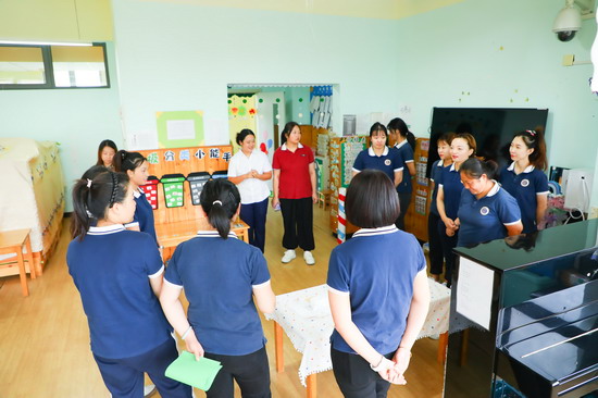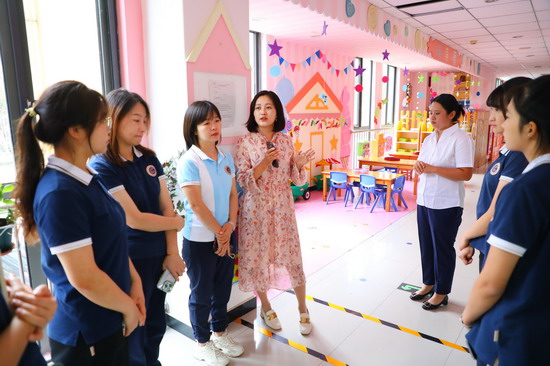 为了更好地感受环境创设的呈现,培训首先组织大家在门头沟园保教主任刘欣、孙京的陪同下,对园内环境创设进行了参观,通过实地观摩,置身其中感受环境创设的魅力。