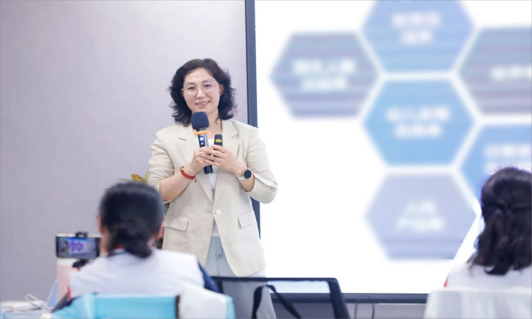 北京威宝儿童成长平台高级专家张鸿以《招生工作中的自信演讲与生动表达》为题,带领大家学习如何运用相关心理学理论,克服紧张,自信演讲,掌握感官化表达的技巧,让表达更生动。她还提醒大家,要明晰找到问题本质、利他思维、展示而非说服等招生家长会背后的底层逻辑,从而更好地赢得家长的信任与支持。